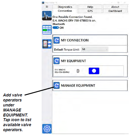 Vitals Mobile will try to connect only to the device listed under MY CONNECTION. If different machine is desired it will need to be moved to the MY CONNECTION section by selecting it from the MY EQUIPMENT section (if it was already paired, otherwise pair first under MANAGE EQUIPMENT).