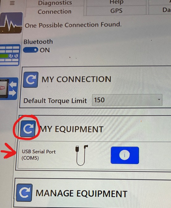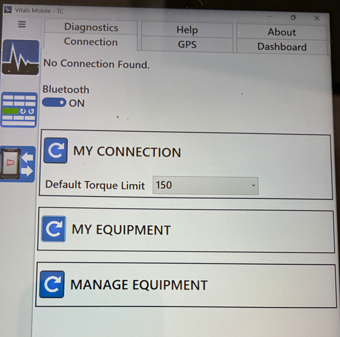 - Now go to Vital Mobile Connection Settings and refresh the My Equipment section by clicking the refresh button and it should now show the cable. After this you can click on the cable to move it up to the My Connection section to start using it.