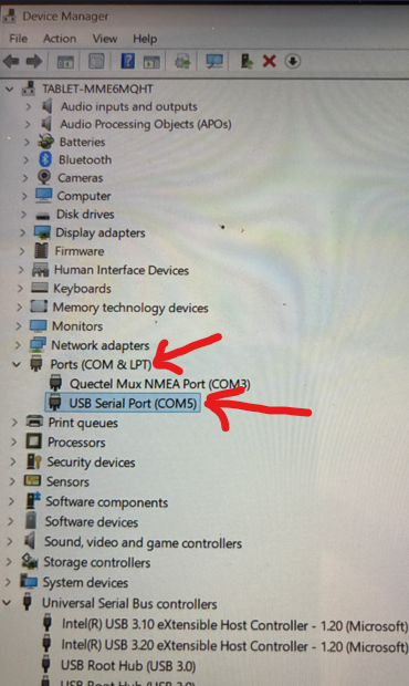 - Once it gets updated, the Other Devices item will not show up anymore and you will have a new item under Ports (COM &LPT) shown as USB Serial Port (COMX). The actual COM number might vary. See below.