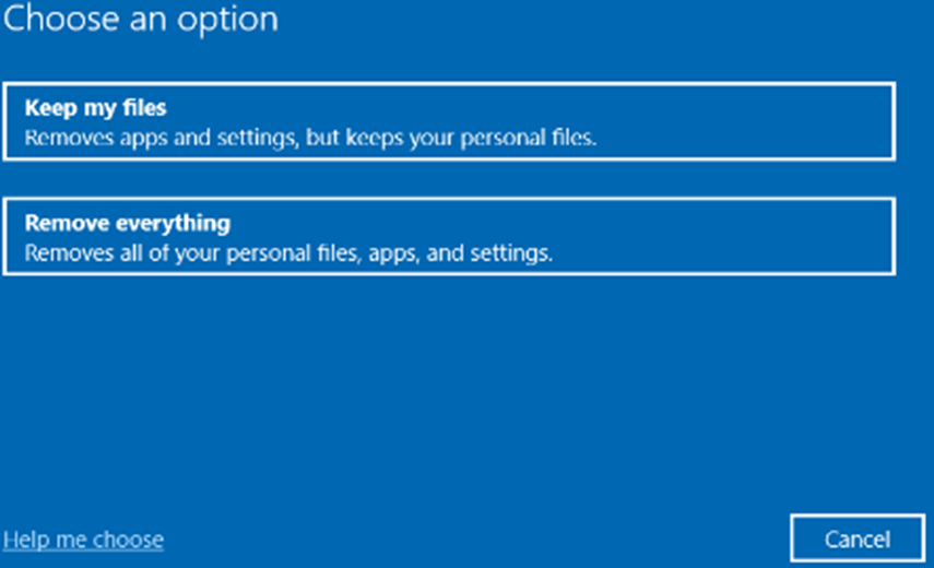 If you are not able to access the current operating system (stuck during boot process or forgot password), tap or press the Shift button (on screen or on an attached USB keyboard) while performing a Restart. If done correctly, you should see a menu with Troubleshoot (Reset your PC) option.